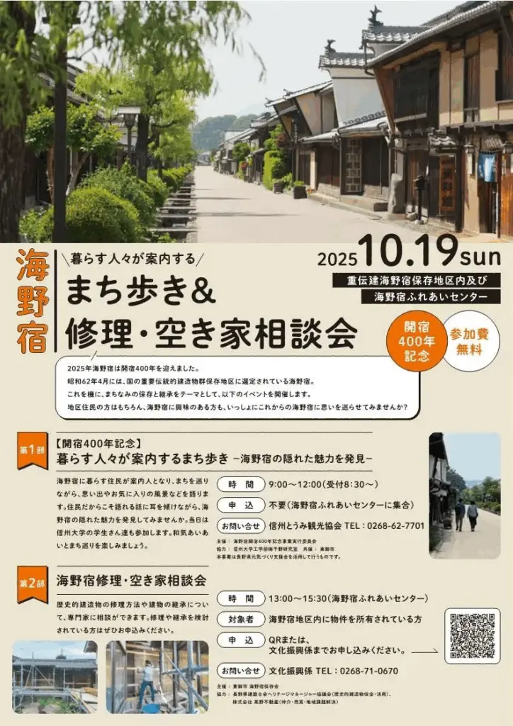 北国街道海野宿 開宿400年記念 まち歩き & 修理・空き家相談会 開催!