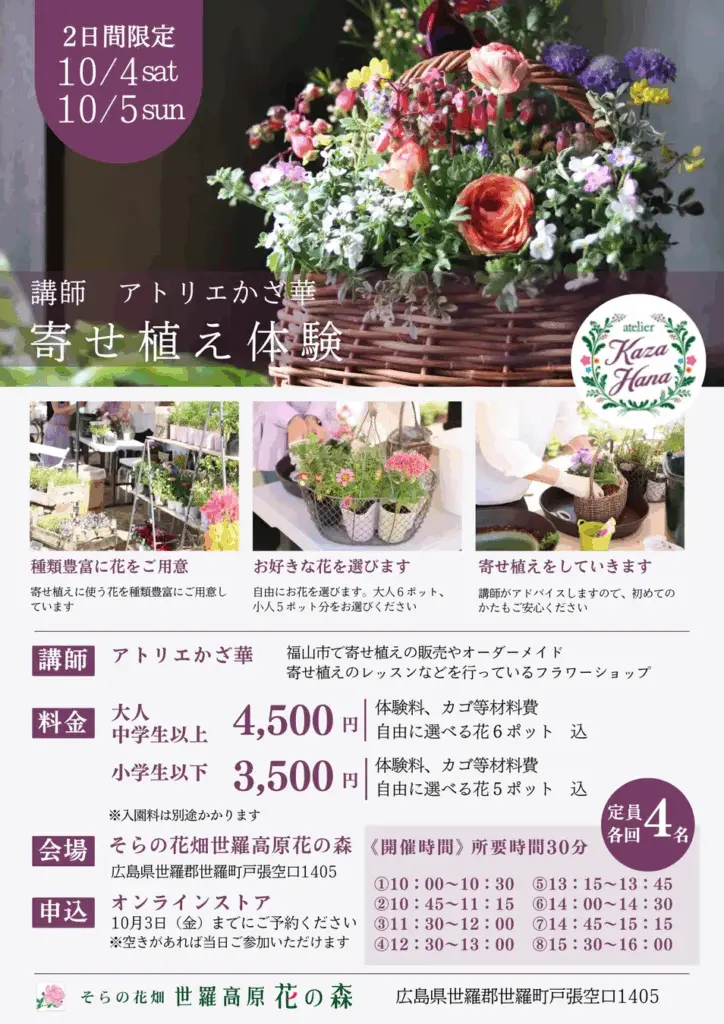 【内容】体験料、カゴ等材料、花ポット込