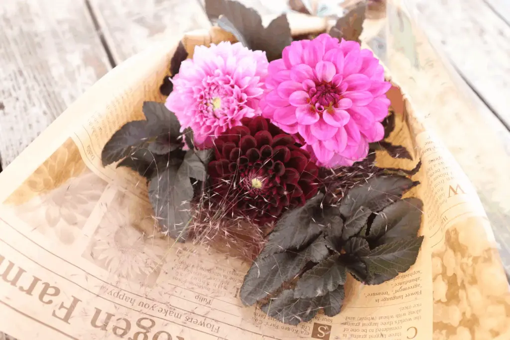 世羅高原農場のダリアを使ってセミオーダー式でブーケをお作りします。