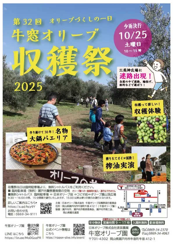 参照元:第32回牛窓オリーブ収穫祭2025 10月25日(土)開催決定 | 日本オリーブ株式会社のプレスリリース