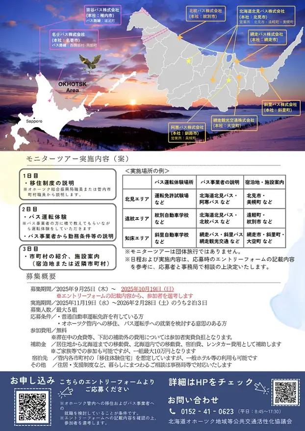 「オホーツクでバスドライバーになろう!移住体験モニターツアー」参加者募集中!