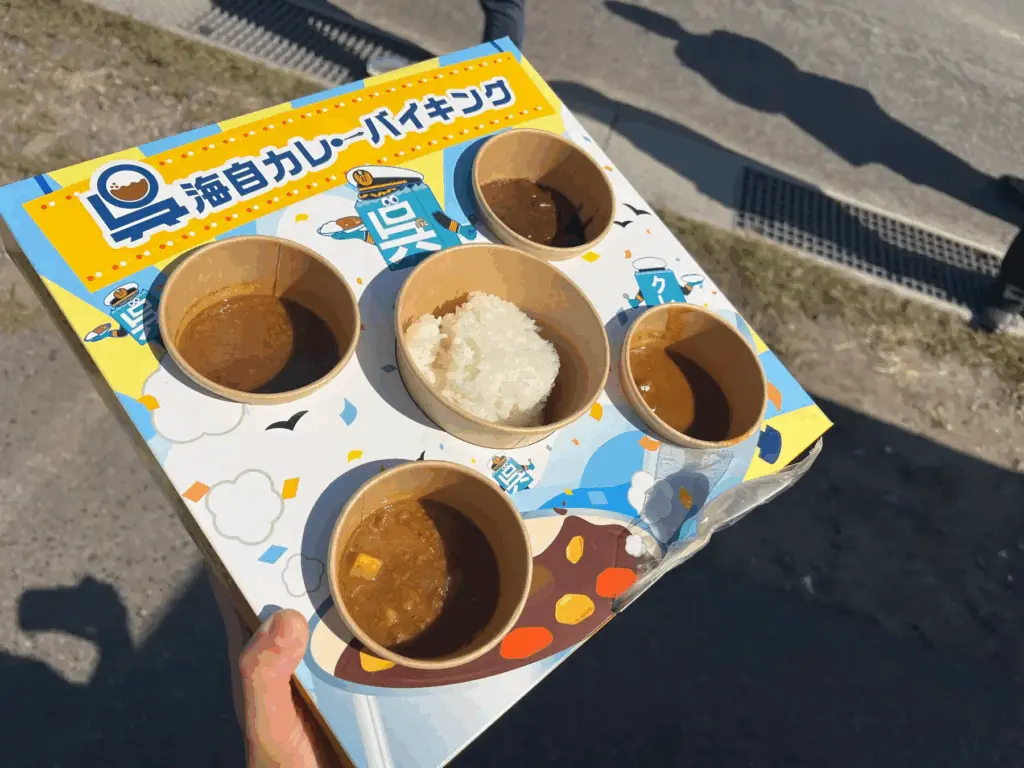 呉海自カレー22種類から4種を選んで食べ比べができる「呉海自カレーバイキング」を開催。