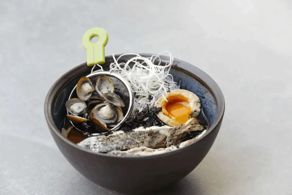 小泉八雲の怪談話の一つである「食人鬼」をイメージしています。宍道湖産のしじみをたっぷり使い、出汁の旨味がたのしめるラーメンです。