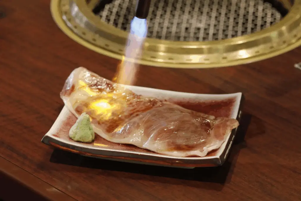 大田市・島根農場で丁寧に育てられた銀山和牛の焼肉が楽しめる「焼肉 銀山和牛」が提供するのは、「舌炙り怪談寿司」です。