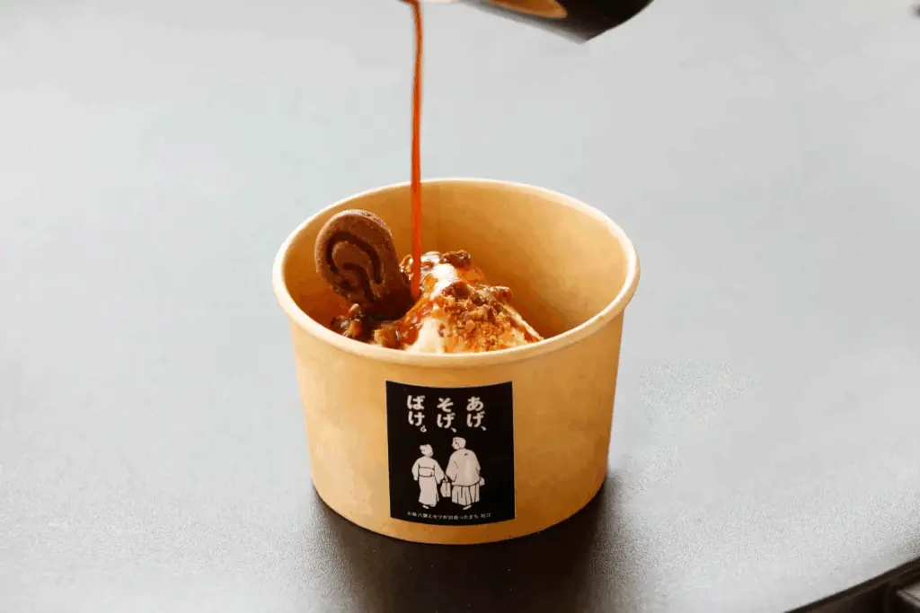 そして、小泉八雲の怪談話の一つである「耳なし芳一」をイメージした耳クッキーがトッピングされており、ちょっと奇妙なアフォガードです。
