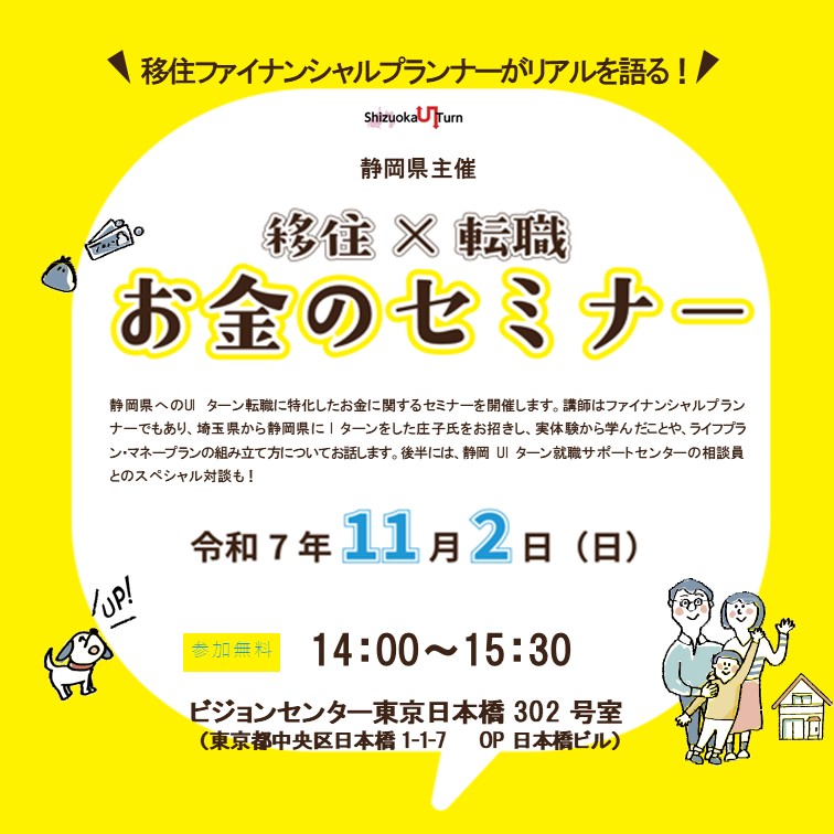 静岡県主催「移住×転職 お金のセミナー」2025年11月2日東京・日本橋で開催!